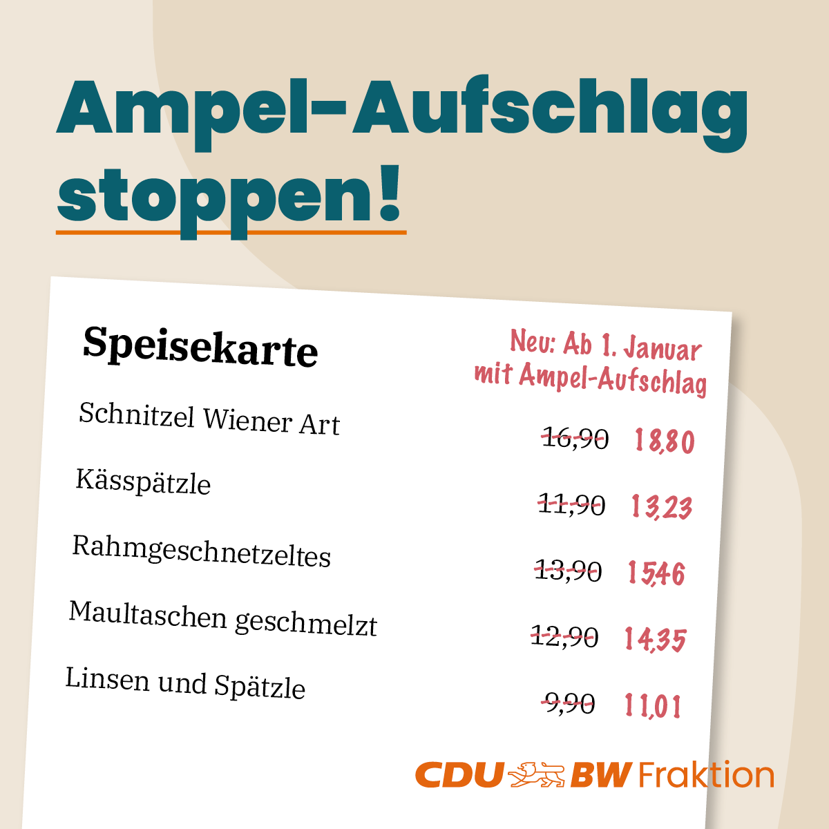 Jedoch gefährden die Pläne der Ampel-Bundesregierung die Zukunft vieler Gastwirtschaften. Die Erhöhung der Mehrwertsteuer von sieben auf 19 Prozent ist ein harter Schlag für die Branche. Isabell Huber MdL stellt heraus: „In diesen besonderen Zeiten ist es wichtig, die Menschen nicht noch weiterhin zu belasten. Die Bundesregierung macht genau das Gegenteil. Die geplante Ampel-Steuer auf Speisen und Getränke in der Gastronomie ist eine Katastrophe für die vielen Betriebe und Gäste. Deshalb rufe ich nochmals die Bundesregierung auf: Lassen Sie die Finger von den sieben Prozent für unsere Gastronomie!“