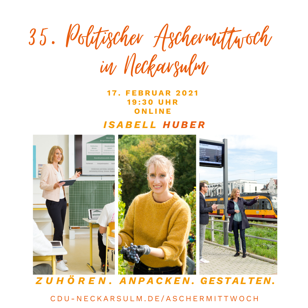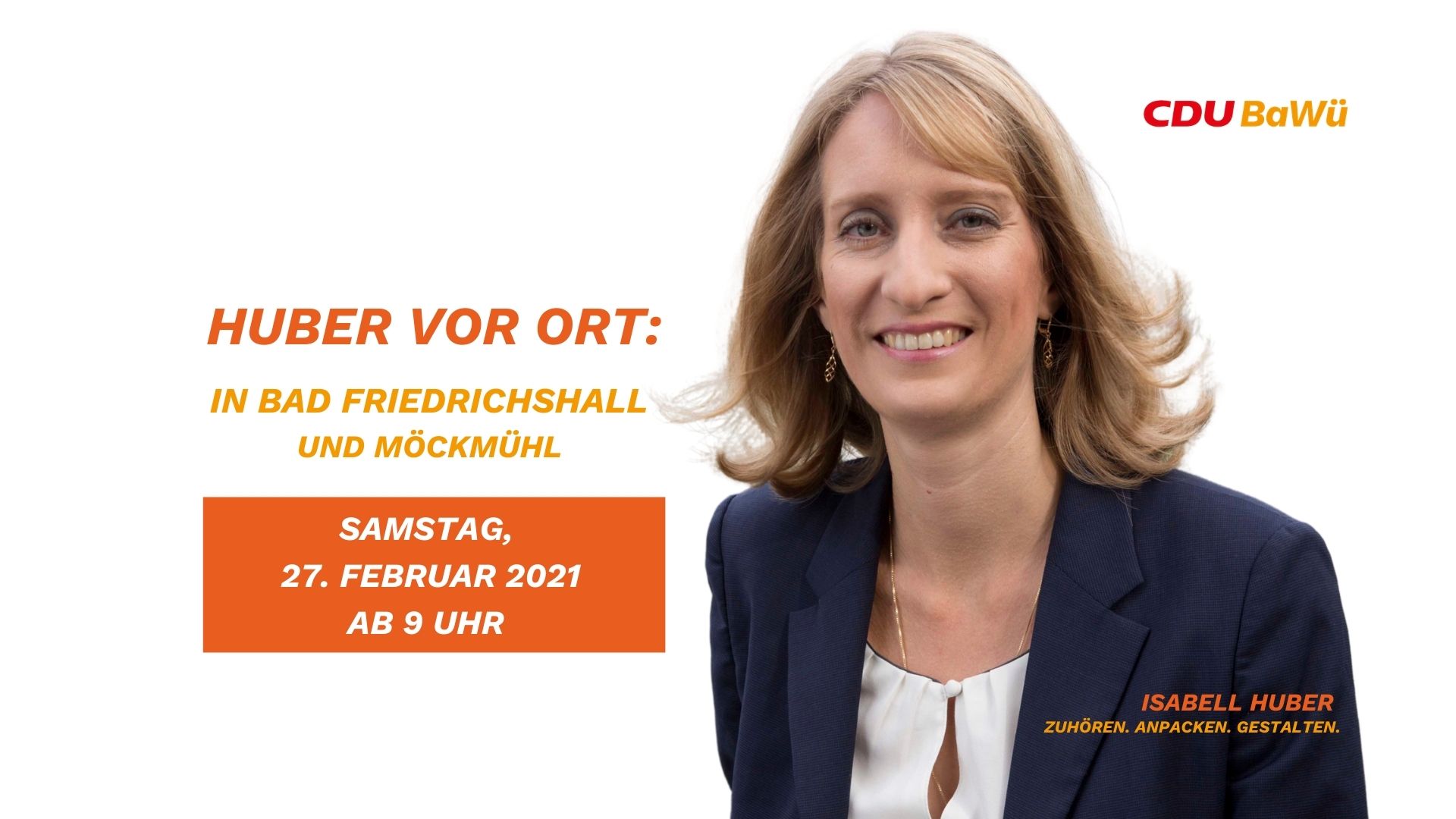 Die örtliche CDU-Landtagsabgeordnete Isabell Huber sowie der örtliche CDU-Bundestagsabgeordnete Alexander Throm laden alle Bürgerinnen und Bürger aus dem gesamten Weinsberger Tal sowie Löwenstein und Wüstenrot für Mittwoch, 24.02., ab 19:30 Uhr zu einem Austausch per Videokonferenz ein....